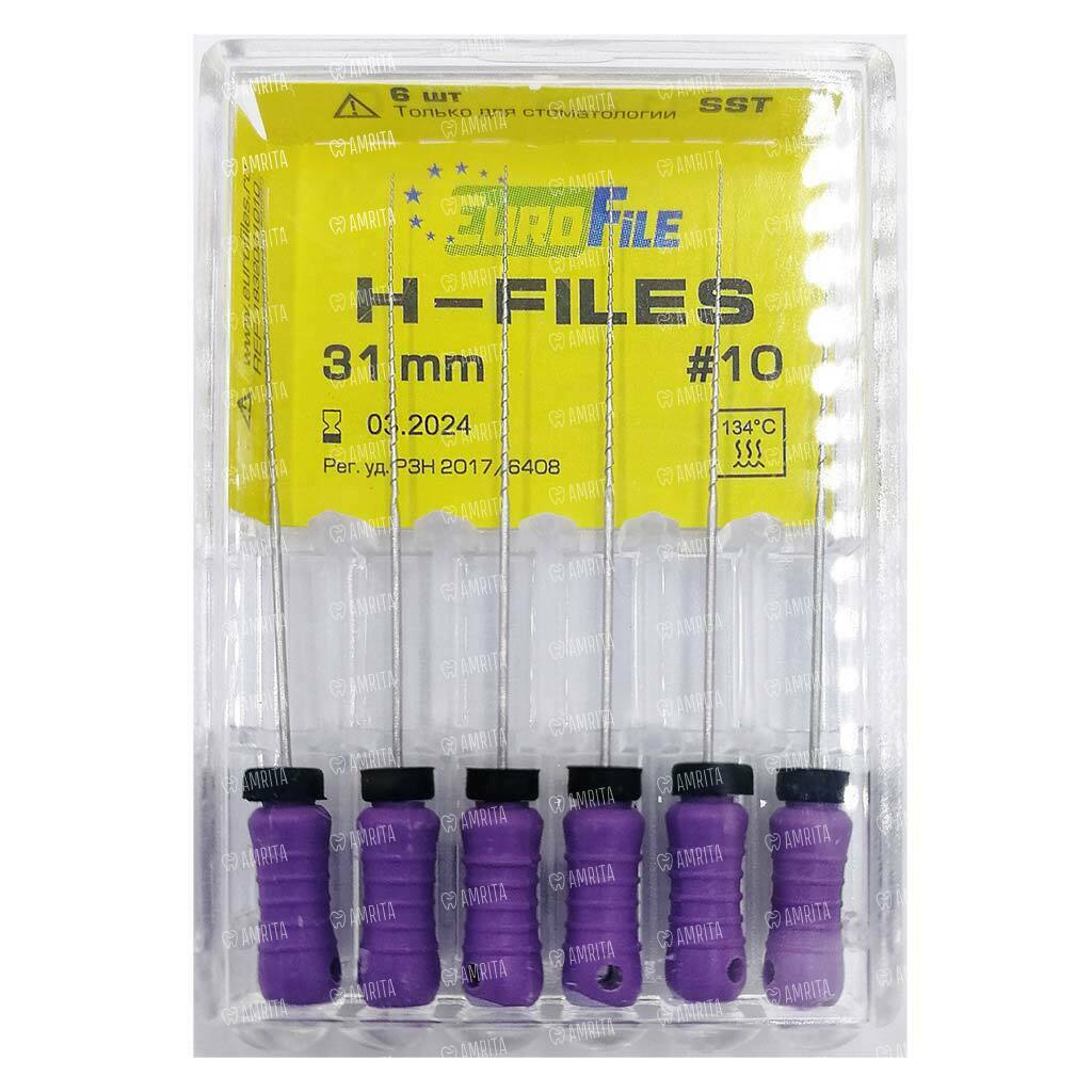 Файлы ручные Eurofile H-Files, для расширения и выравнивания корневого канала, 31 мм, №10/.02, сталь, 6 шт