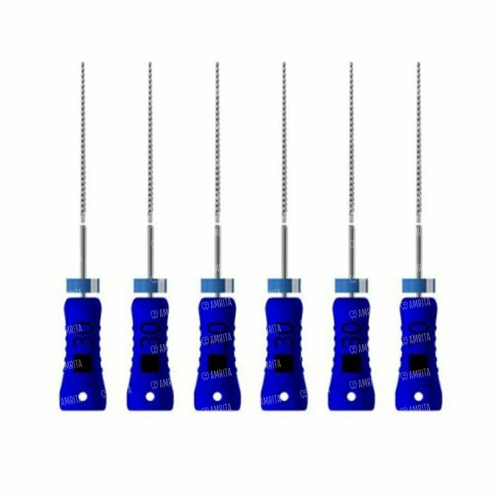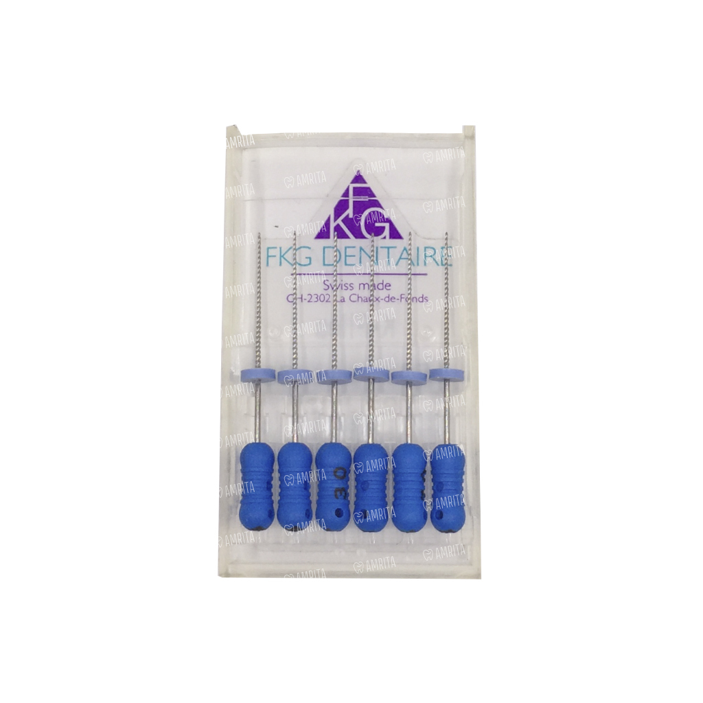 Файлы ручные FKG К-Files, для зондирования и прохождения каналов, стандартная ручка, 25 мм, №30/.02, сталь, 6 шт
