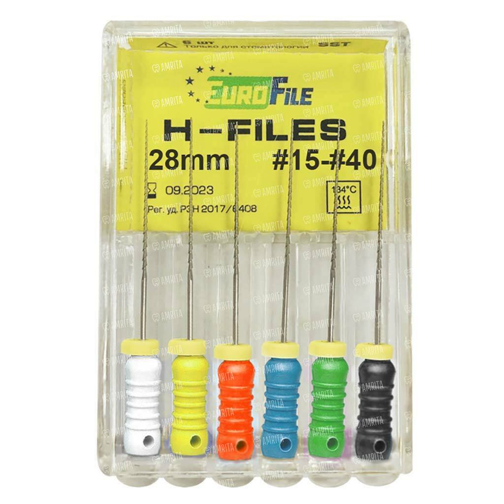 Файлы ручные Eurofile H-Files, для расширения и выравнивания корневого канала, 28 мм, набор №15-40/.02, сталь, 6 шт