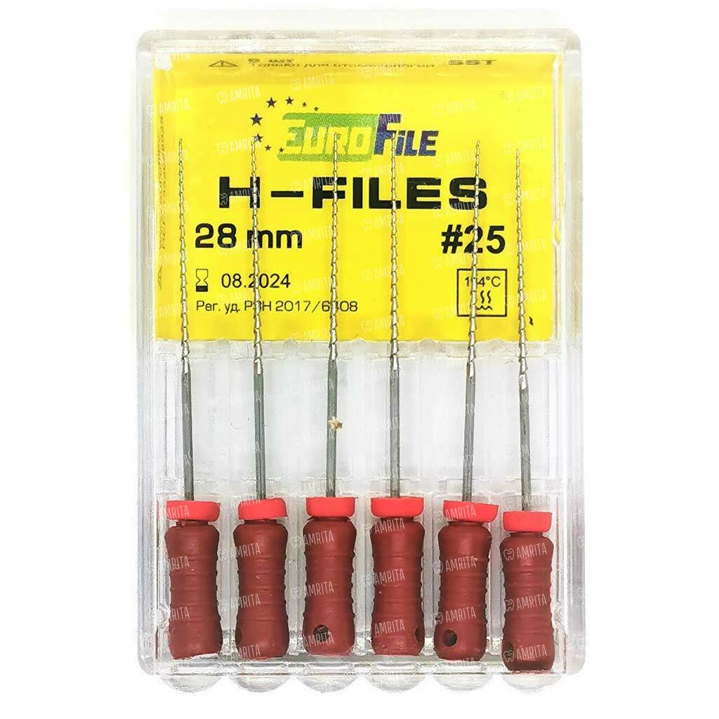 Файлы ручные Eurofile H-Files, для расширения и выравнивания корневого канала, 28 мм, №25/.02, сталь, 6 шт