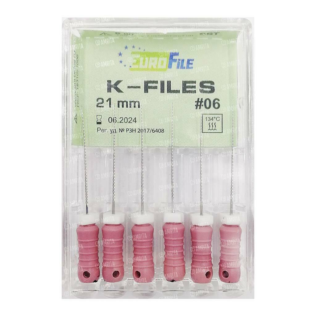 Файлы ручные Eurofile K-Files, для прохождения и расширения корневых каналов, 21 мм, №06/.02, сталь, 6 шт