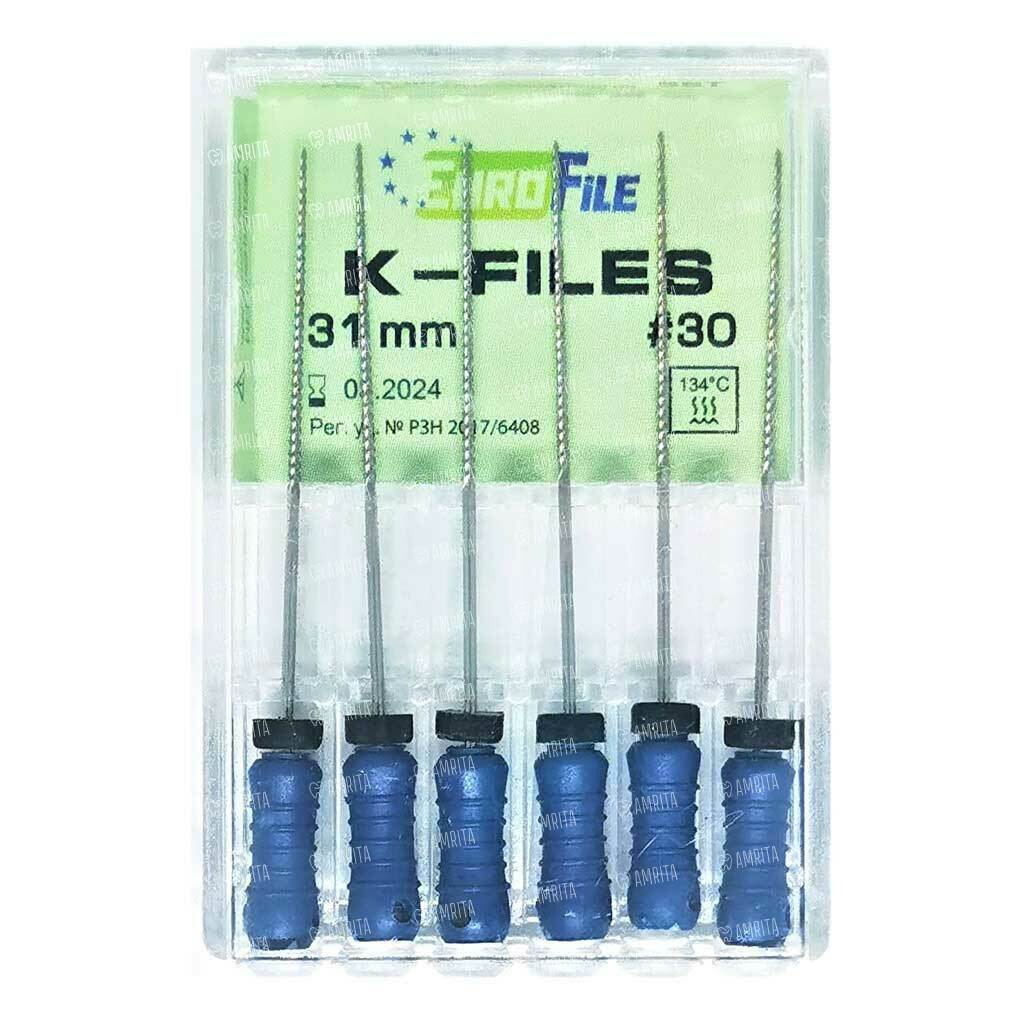 Файлы ручные Eurofile K-Files, для прохождения и расширения корневых каналов, 31 мм, №30/.02, сталь, 6 шт