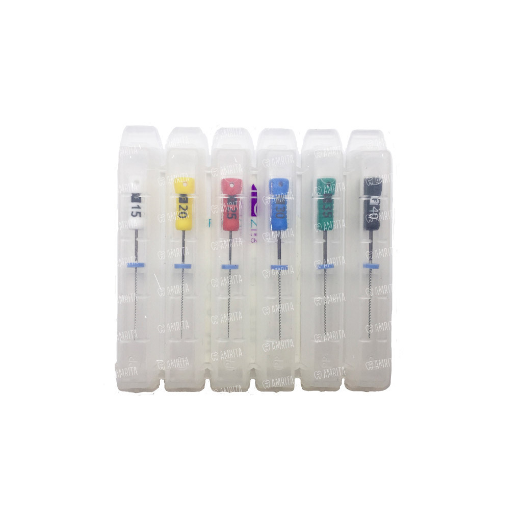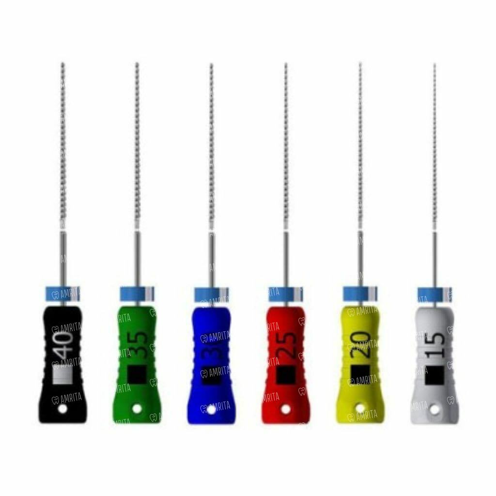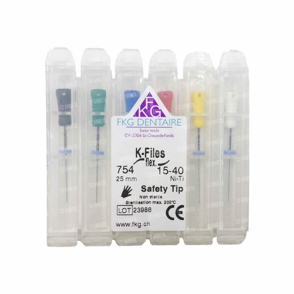 Файлы ручные FKG К-Files FLEX, для зондирования и прохождения каналов, стандартная ручка, 25 мм, набор №15-40/.02, никель-титан, 6 шт
