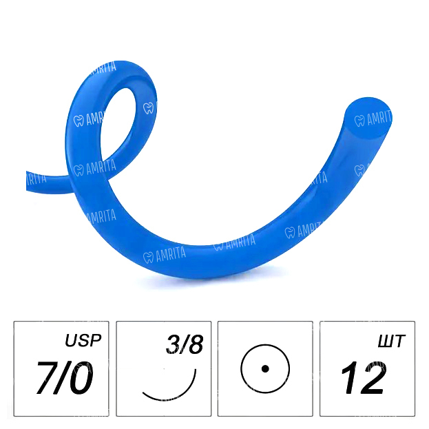 Шовный материал Полипропилен — мононить 7/0 75 см, колющая игла 13 мм 3/8, синий, 12 шт
