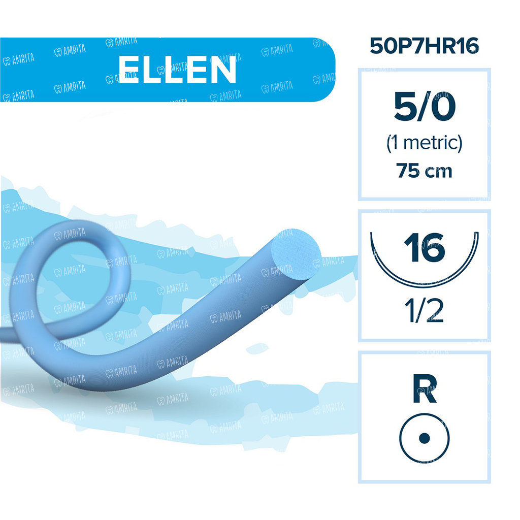 Шовный материал Elemaar ELLEN, нерассасывающаяся мононить, 5/0 75 см, колющая игла 16 мм 1/2, синий, 12 шт