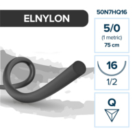 Шовный материал Elemaar ELNYLON, нерассасывающаяся мононить, 5/0 75 см, обратно-режущая игла 16 мм 3/8, черный, 12 шт