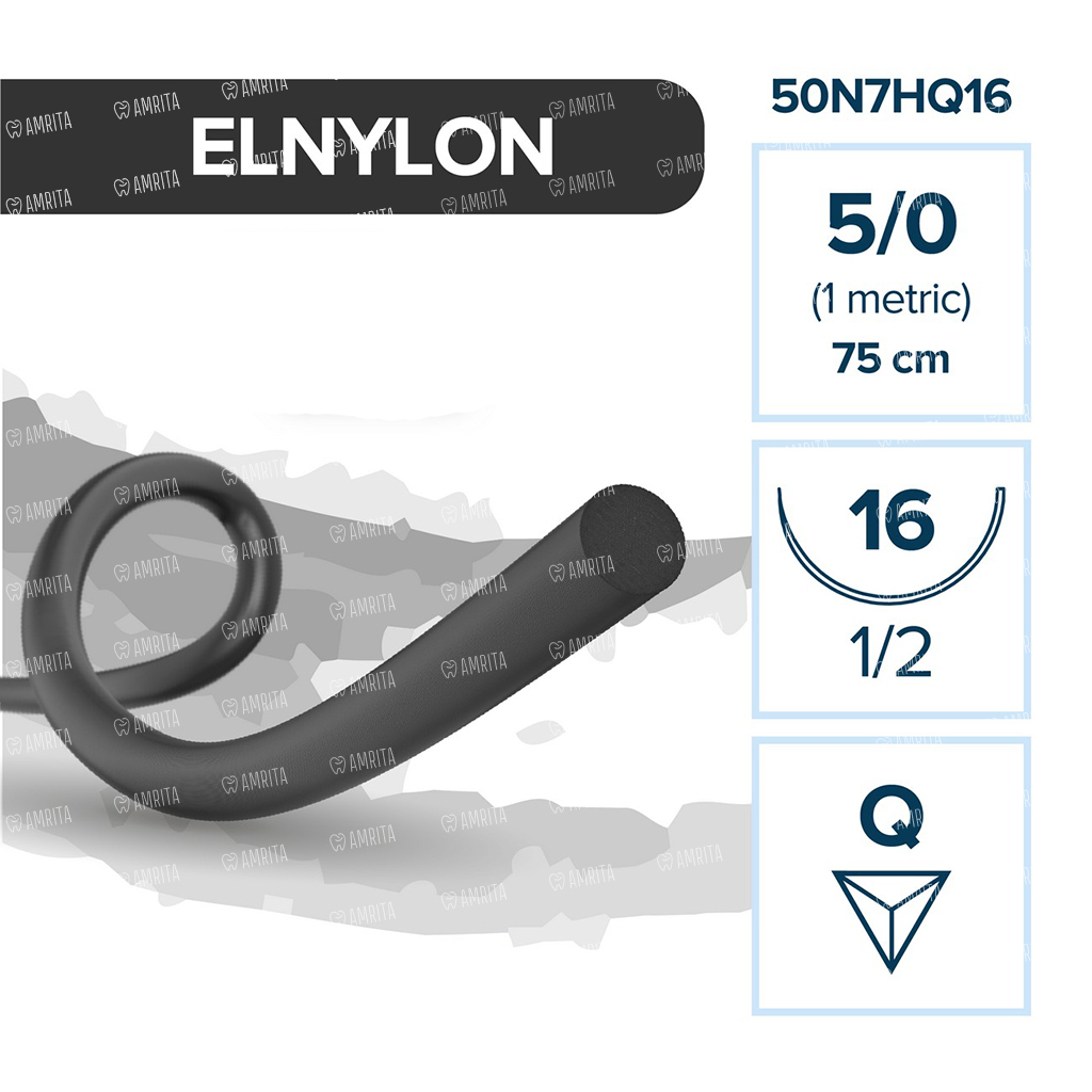 Шовный материал ELNYLON состоит из сополимера полиамида 6/6.6. Это нейлоновая монофиламентная нить, атравматично проходящая через ткани.