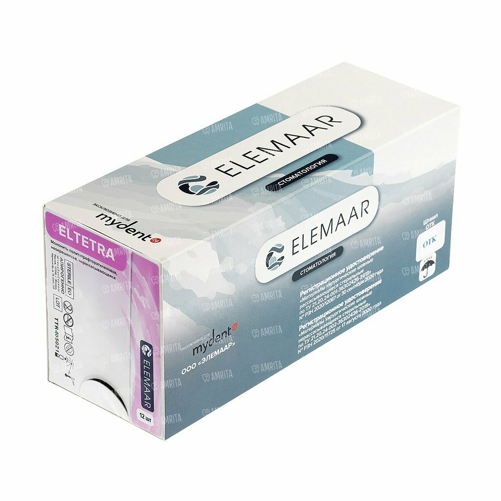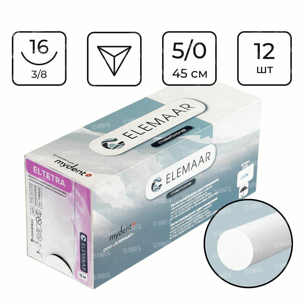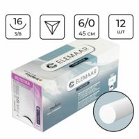 Шовный материал Elemaar ELTETRA, нерассасывающаяся мононить 5/0 45 см, обратно-режущая игла 16 мм 3/8, неокрашенный, 12 шт
