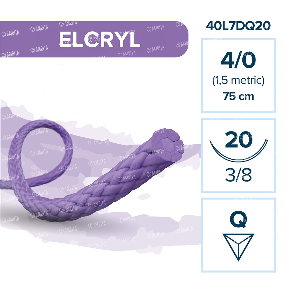 Шовный материал Elcryl - это рассасывающаяся плетеная хирургическая нить, которая стоит из сополимера гликолида с L-лактидом (в соотношении 90: 10), покрыта компонентом того же состава в сочетании со стеаратом кальция.