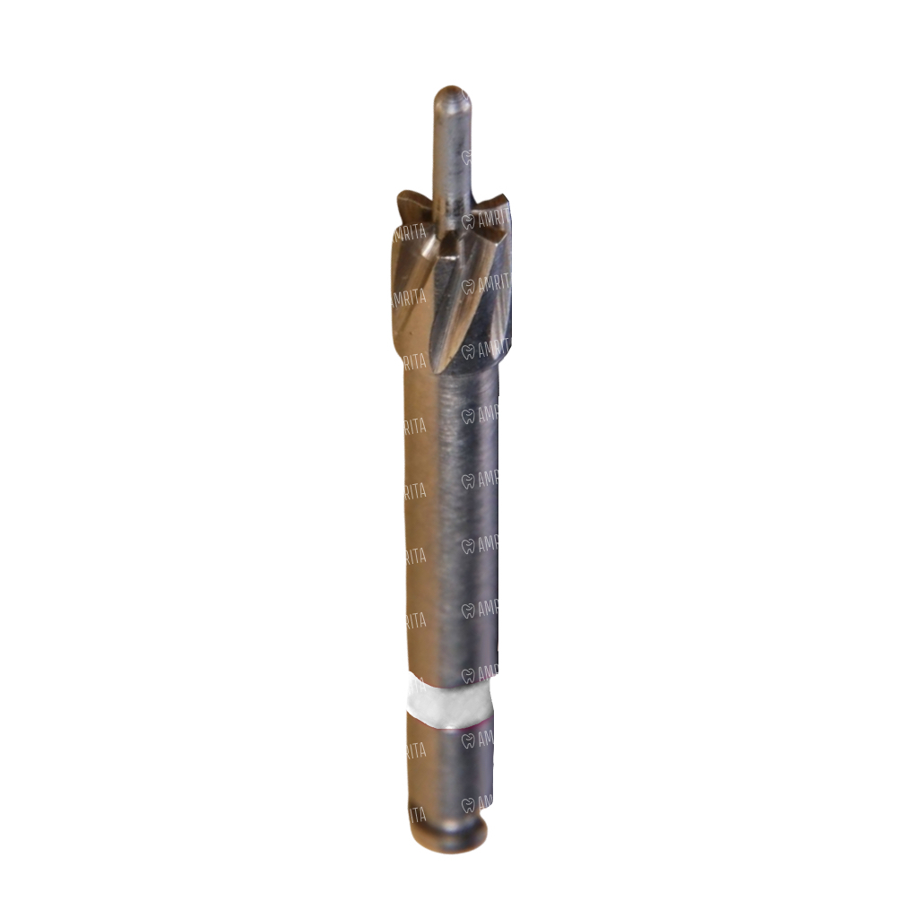 - Создание идеальной установочной площадки. Основная функция фрезы — выравнивание и формирование плоского ложа на устьевой части корня. Это необходимо для того, чтобы объемная головка штифта серии «М» плотно и стабильно опиралась на ткани зуба, а не удерживалась исключительно за счет цемента.
