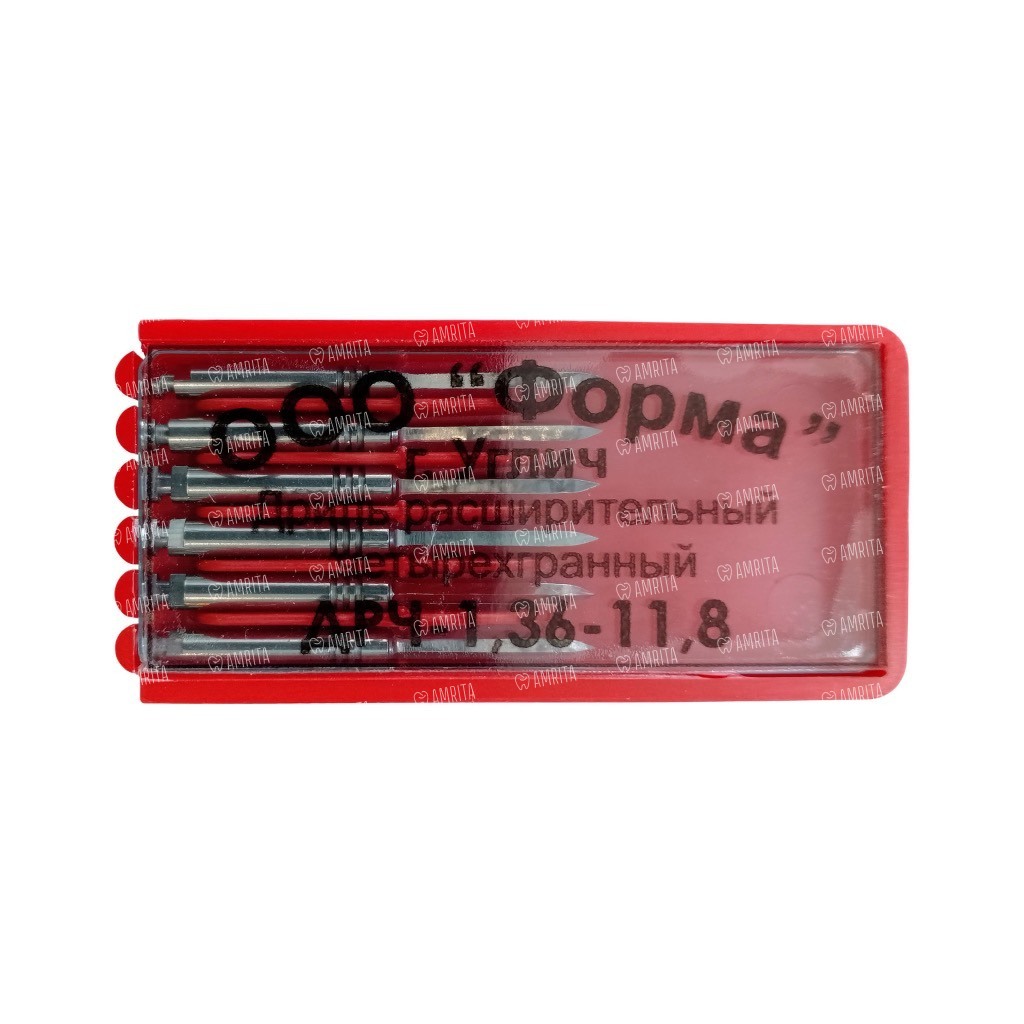 Дриль расширительный ФОРМА ДРЧ, для установки штифтов, четырехгранный, D=1.36 мм, L=11.8 мм, сталь, 6 шт