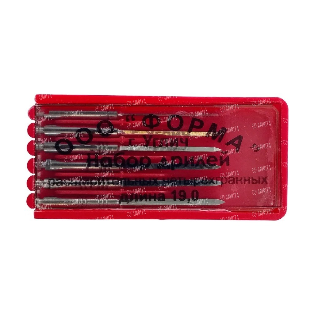 Дриль расширительный ФОРМА ДРЧ, для установки штифтов, четырёхгранный, L=19 мм, набор, сталь, 6 шт