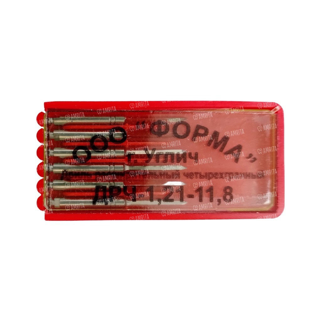 Дриль расширительный ФОРМА ДРЧ, для установки штифтов, четырехгранный, D=1.82 мм, L=11.8 мм, сталь, 6 шт