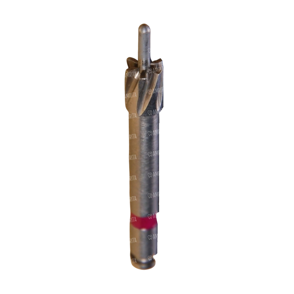 - Создание идеальной установочной площадки. Основная функция фрезы — выравнивание и формирование плоского ложа на устьевой части корня. Это необходимо для того, чтобы объемная головка штифта серии «М» плотно и стабильно опиралась на ткани зуба, а не удерживалась исключительно за счет цемента.