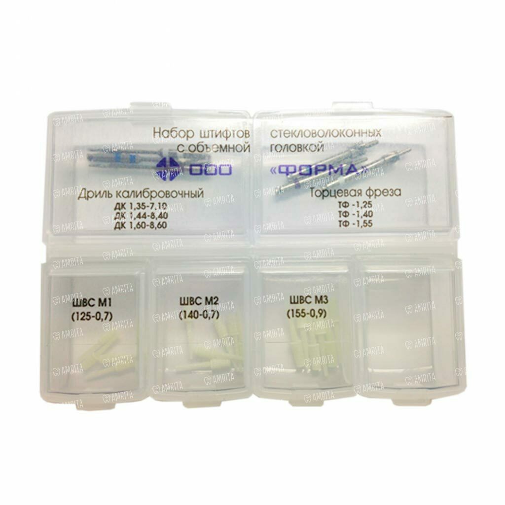 Набор штифтов стекловолоконных внутриканальных ФОРМА ШВС серия M, для реставрации зуба, с объёмной головкой, 18 шт + 6 шт дриля ТФ/ДК