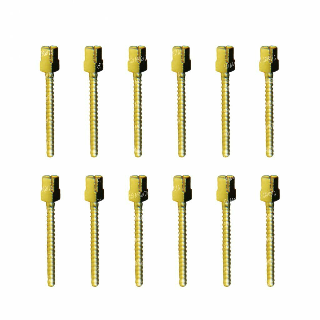 Штифт латунный позолоченный внутриканальный ФОРМА ШВП №XL4, анкерный, для реставрации коронки зуба, цилиндр, D=1.5 мм, L=14 мм, 12 шт
