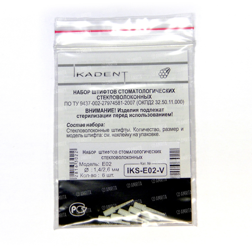 Штифт стекловолоконный внутриканальный Ikadent №E02, анкерный, пассивный для реставрации сильно разрушенных зубов, D=2.3/0.7 мм, L=5.0/9.2 мм, 6 шт