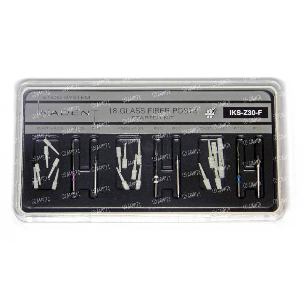 Набор штифтов стекловолоконных внутриканальных Ikadent №E, анкерный, пассивный, для реставрации сильно разрушенных зубов, 18 шт + 6 инструментов