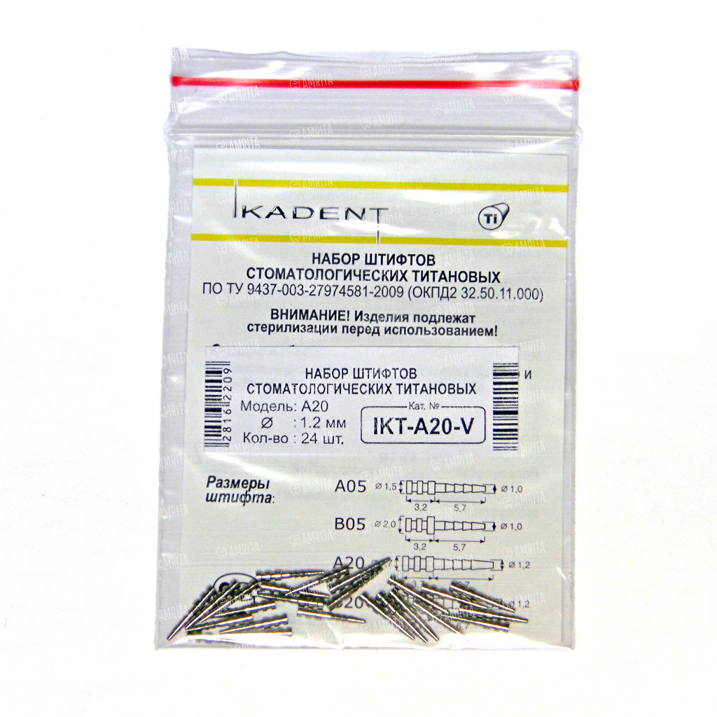 Штифт титановый внутриканальный IkaDent №A20, пассивный, для реставрации частично разрушенной коронки зуба, цилиндр, D=1.7/1.2 мм, L=3.7/6.7 мм, 24 шт