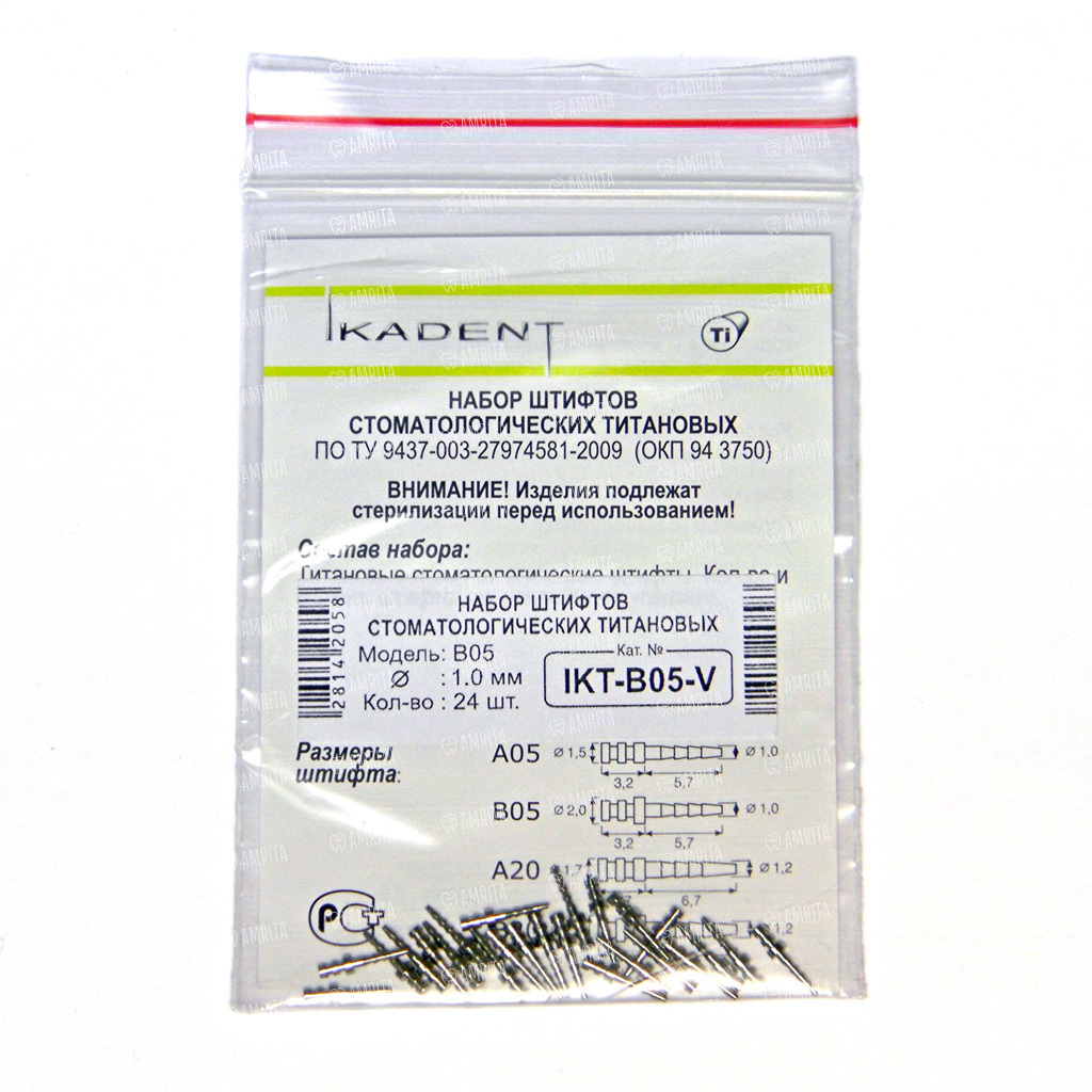 Штифт внутриканальный титановый IkaDent (Модели А и В) — это армирующий элемент нового поколения, изготовленный из высококачественного биосовместимого титанового сплава и обладающий продуманной пассивной конструкцией для максимальной безопасности и долговечности при восстановлении частично разрушенной коронковой части зуба пломбировочным материалом.