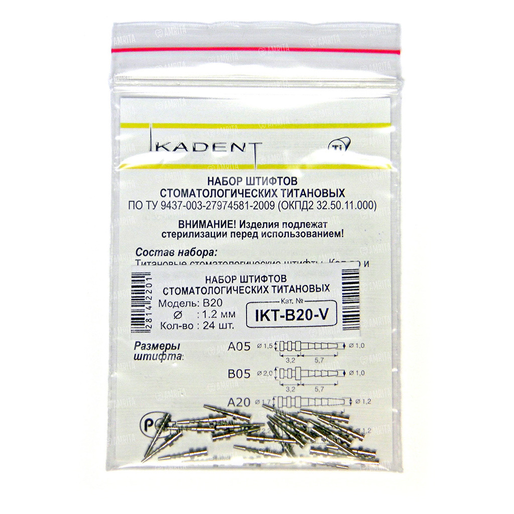 Штифт внутриканальный титановый IkaDent (Модели А и В) — это армирующий элемент нового поколения, изготовленный из высококачественного биосовместимого титанового сплава и обладающий продуманной пассивной конструкцией для максимальной безопасности и долговечности при восстановлении частично разрушенной коронковой части зуба пломбировочным материалом.