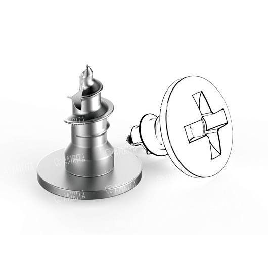 Винты используются для стабильной фиксации резорбируемых и не резорбируемых мембран и титановых сеток. Крестообразный шлиц на головке винта обеспечивает более жесткую фиксацию винта на лезвии отвертки. Во время введения винта, лезвие отвертки прочно соединяется с головкой винта.