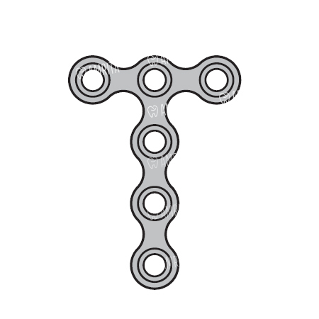 Длинная мини-пластина Конмет толщиной 0,6 мм изготовлена из титана, имеет Т-образную форму и 6 отверстий. Применяется для черепно-челюстно-лицевого остеосинтеза и костной пластики.