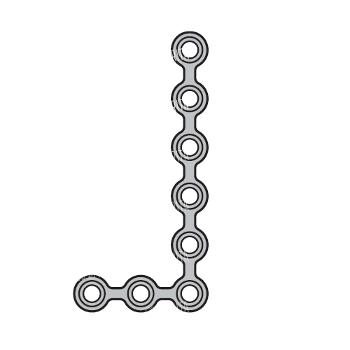 Микропластина Конмет толщиной 0,6 мм изготовлена из титана, имеет L-образную форму и 8 отверстий. Применяется для черепно-челюстно-лицевого остеосинтеза и костной пластики.