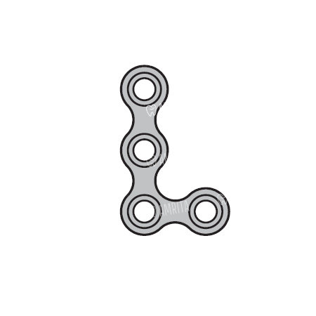 Короткая мини-пластина Конмет толщиной 0,6 мм изготовлена из титана, имеет L-образную правую форму и 4 отверстия. Применяется для черепно-челюстно-лицевого остеосинтеза и костной пластики.