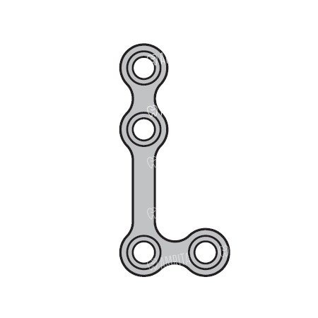 Длинная мини-пластина Конмет толщиной 0,6 мм изготовлена из титана, имеет L-образную правую форму и 4 отверстия. Применяется для черепно-челюстно-лицевого остеосинтеза и костной пластики.