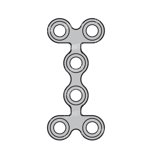 Мини-пластина Конмет толщиной 1 мм изготовлена из титана, имеет Н-образную форму и 6 отверстий. Применяется для черепно-челюстно-лицевого остеосинтеза и костной пластики.
