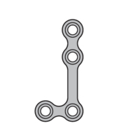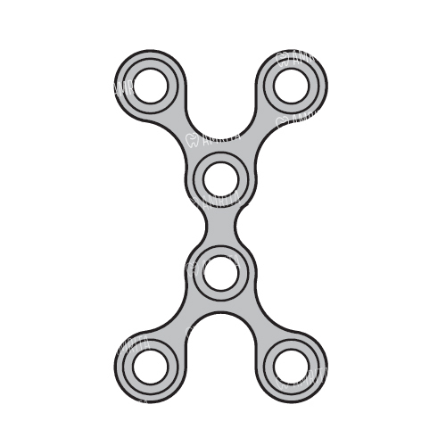 Короткая мини-пластина Конмет толщиной 1 мм изготовлена из титана, имеет Х-образную форму и 6 отверстий. Применяется для черепно-челюстно-лицевого остеосинтеза и костной пластики.
