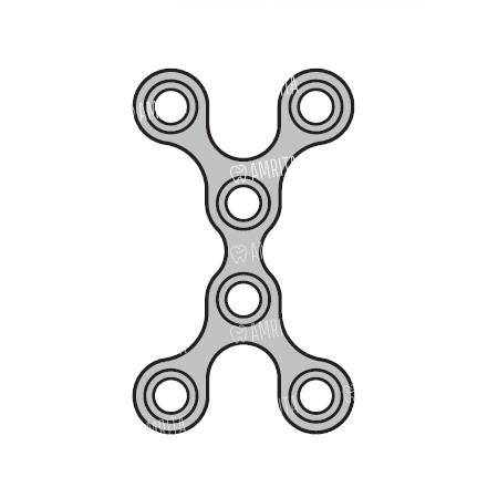 Короткая мини-пластина Конмет толщиной 0,6 мм изготовлена из титана, имеет Х-образную форму и 6 отверстий. Применяется для черепно-челюстно-лицевого остеосинтеза и костной пластики.