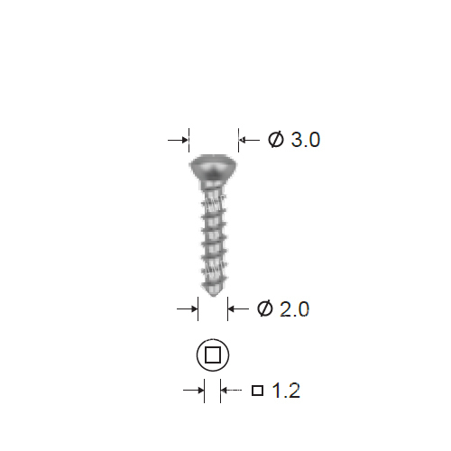Винт самонарезающий Конмет изготовлен из титана и применяется в челюстно-лицевой хирургии. Винт исключительно прочно фиксируется на отвёртке благодаря прецизионному соединению шлиц-квадрат. Перед его вкручиванием необходимо просверлить в кости отверстие, в котором он затем нарежет резьбу. Именно поэтому винт называется самонарезающим.