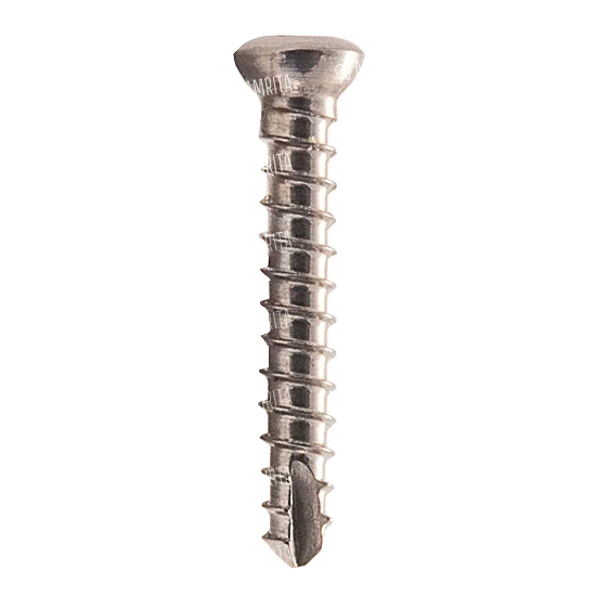 Винт самонарезающий Конмет изготовлен из титана и применяется в челюстно-лицевой хирургии. Винт исключительно прочно фиксируется на отвёртке благодаря прецизионному соединению шлиц-квадрат. Перед его вкручиванием необходимо просверлить в кости отверстие, в котором он затем нарежет резьбу. Именно поэтому винт называется самонарезающим.