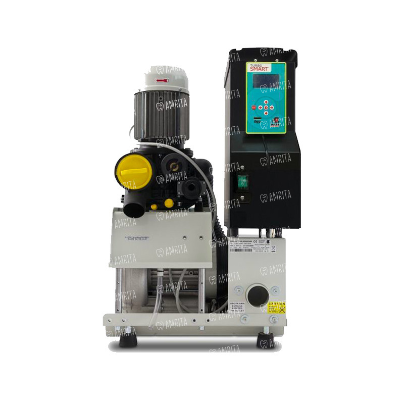 TURBO–SMART — полусухой аспиратор с инверторным управлением. Это самый мощный и самый умный на сегодняшний день централизованный аспиратор с плавным электронным управлением и производительностью, уровнем вакуума и энергопотреблением, в зависимости от режимов работы. Возможности настройки его рабочих параметров делают его пригодным для работы в любой сфере зубоврачебной практики: хирургии, протезировании и эндодонтии.