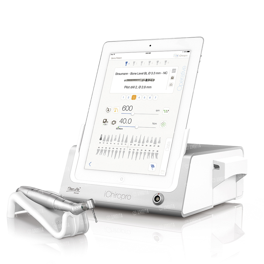 Все настройки от подготовки ложа до вкручивания имплантата можно индивидуально выбрать и сохранить в зависимости от потребностей каждого пользователя. Параметры операций имплантологической и хирургической системы iChiropro могут настраиваться для облегчения Вашей работы: частота вращения, крутящий момент, направление вращения, подача раствора, интенсивность подсветки, запись данных и т. д.