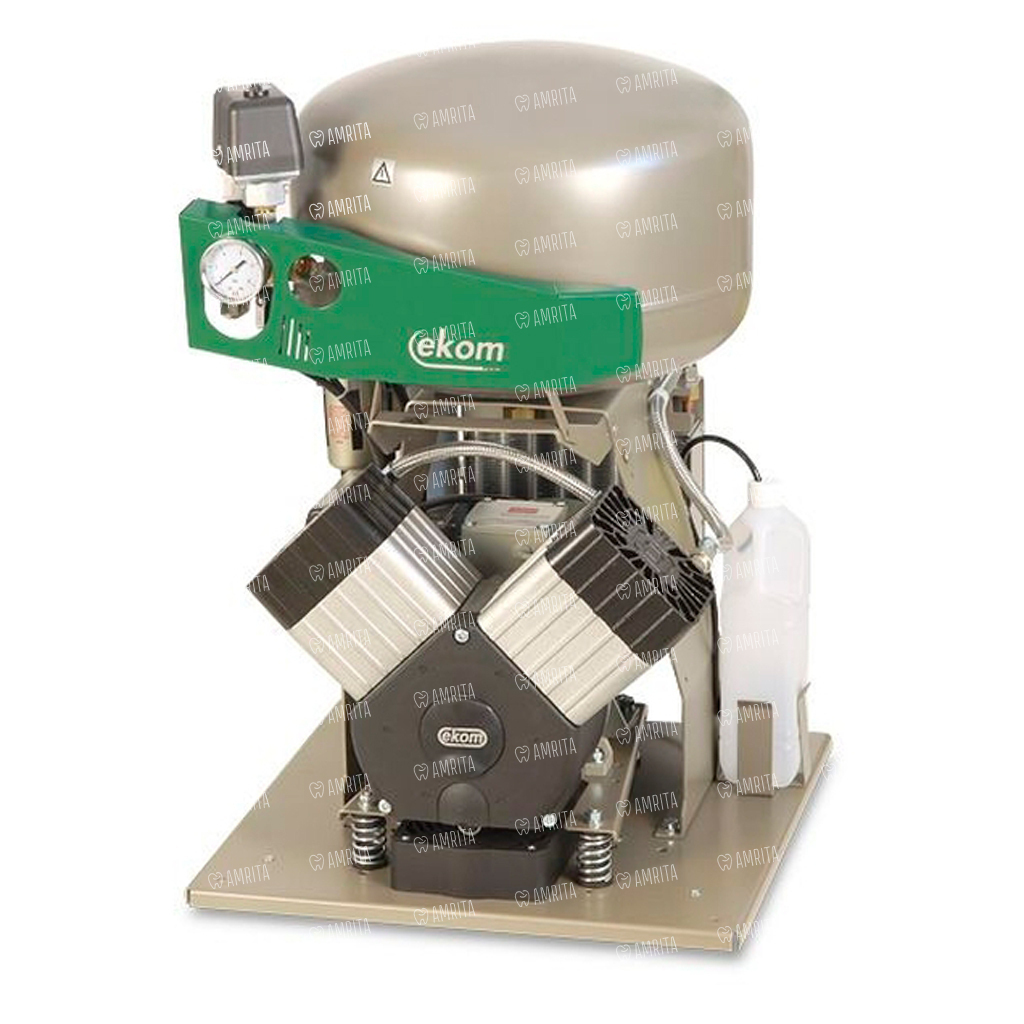 Безмасляный компрессор EKOM серии DK50 является источником чистого, безмасляного сжатого воздуха, предназначенного для приведения в движение зубоврачебных приборов и устройств. По своим техническим параметрам и размерам резервуара воздуха объемом 25 л, компрессор этого типа может обслуживать два комплекса стоматологических устройств, или оборудования в зубопротезных лабораториях. Сжатый воздух, производимый безмасляным компрессором указанного типа, обеспечивает высокую степень соблюдения гигиены и качества труда стоматолога, не создавая, притом, вокруг себя среду, содержащую чужеродные вещества.