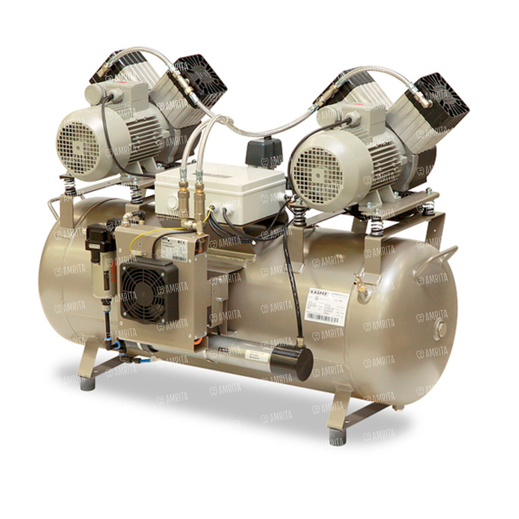 EKOM DK50 2X2V/110/M - безмасляный компрессор для 4-х стоматологических установок без кожуха, с осушителем, с ресивером 110 л