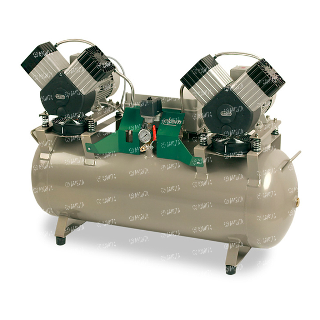 EKOM DK50 2X2V/110 - безмасляный компрессор для 4-х стоматологических установок без кожуха, без осушителя, с ресивером 110 л