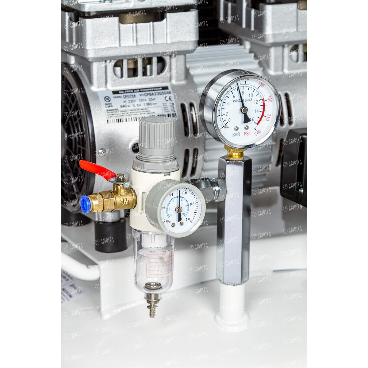 Безмасляный воздушный компрессор MERCURY HK-2EW-35 с осушителем, не только сжимает воздух, без использования масла, но и устраняет лишнюю влагу. Отличное соотношение цены и качества, а также наличие возможности поддержания работы сразу двух установок делает данный компрессор отличным выбором для вашей работы.