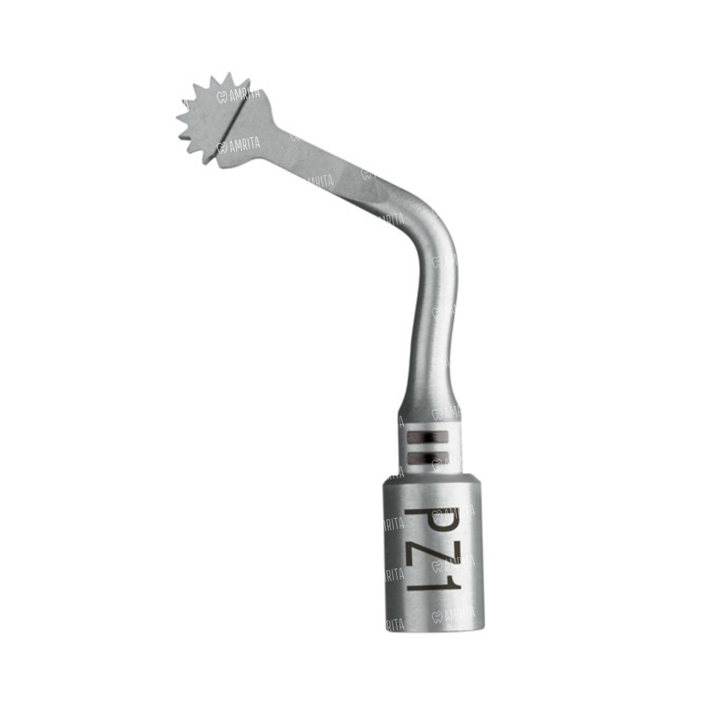 - PZ2L, арт. F87572 — ускорение ортодонтического лечения. Повернутая влево закругленная пила для латеральной кортикотомии. При работе насадкой используются маятниковые движения. Рекомендуемая глубина погружения - 3 мм