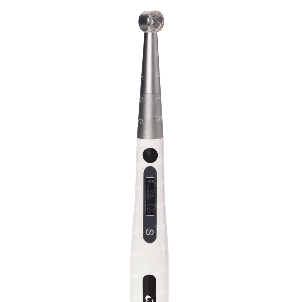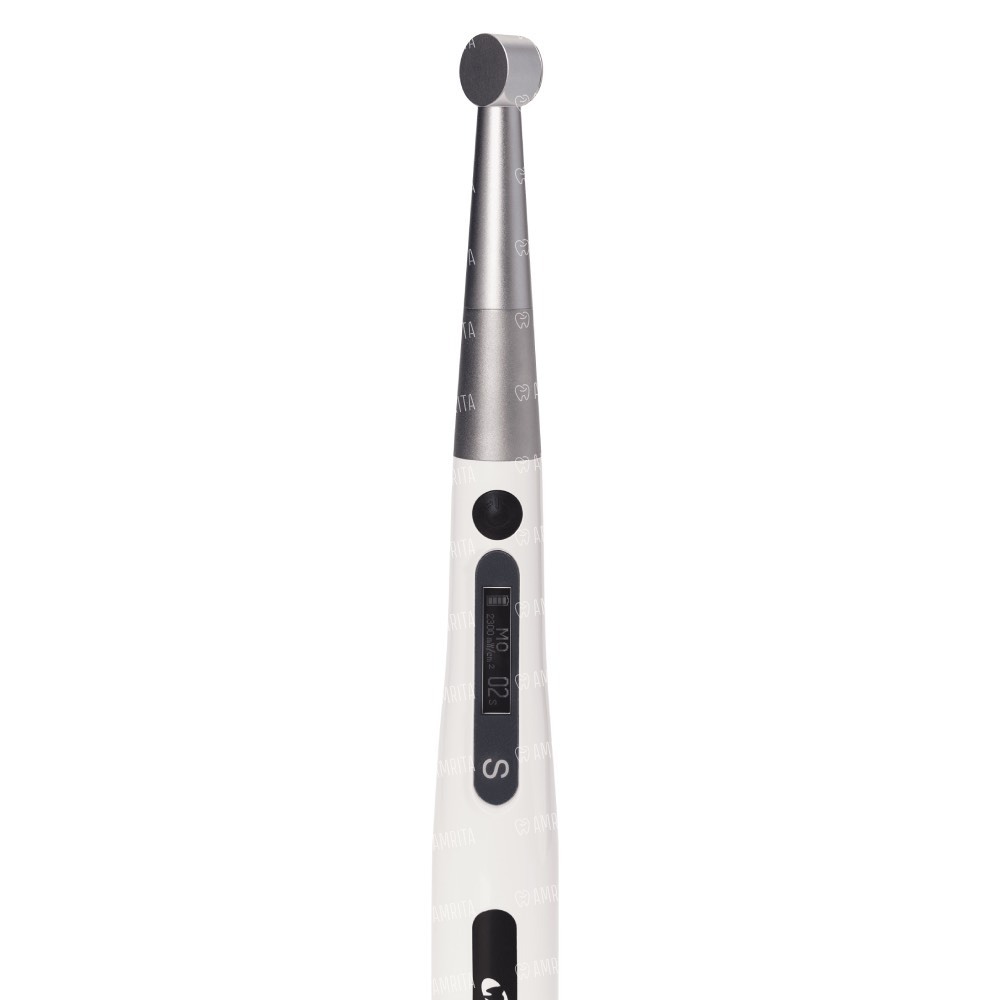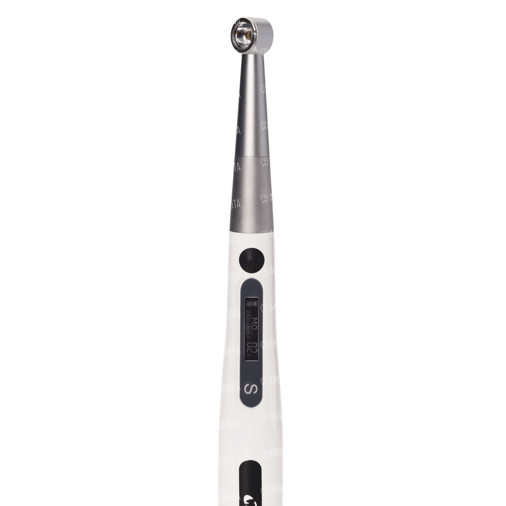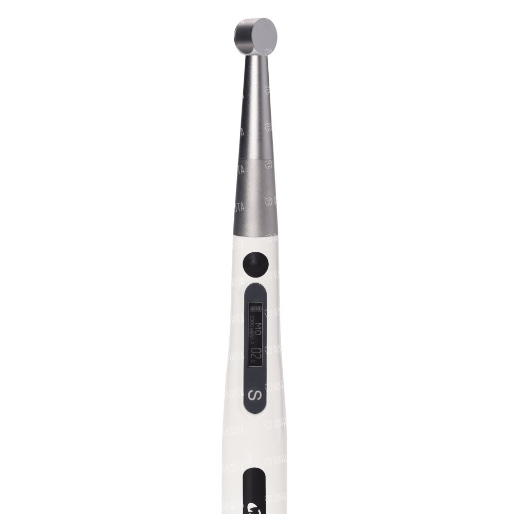 - Шесть программ для работы: M0, M1 и M2 с настройками мощности и длительности воздействия (2300, 1500 или 1000 мВт/см²), мягкий старт, импульсный режим и кариес-детектор