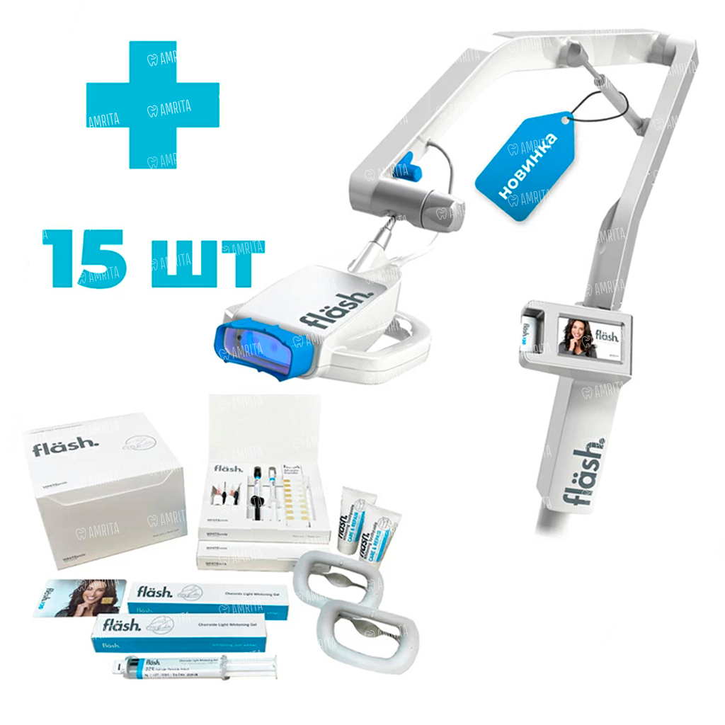 15 наборов Flash для 2-х пациентов + Лампа для отбеливания Flash (комплект).