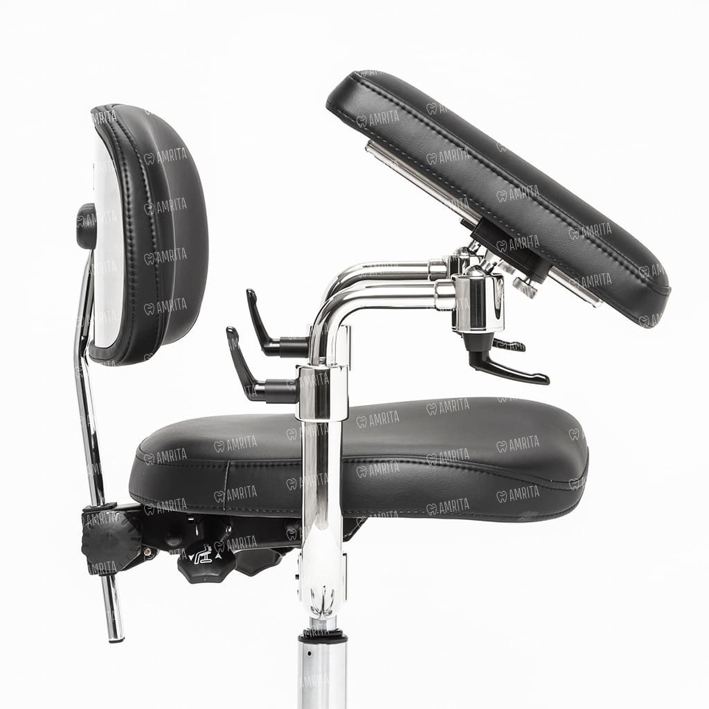 Механизм локтевого упора используется во всей линейке Elite позволяет комфортно настроить положение для человека с любой комплекцией, что увеличивает его универсальность, так как вы можете вести общую практику и работать за микроскопом.