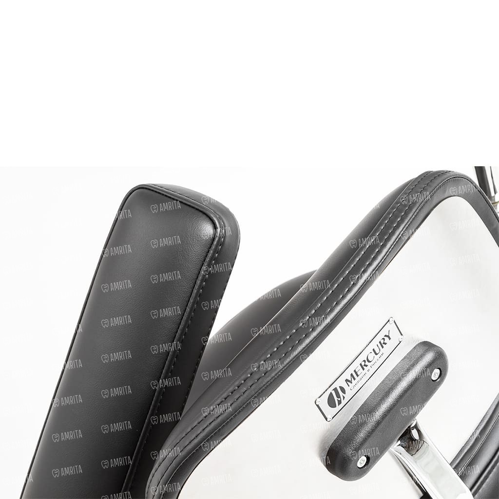 Не менее важной частью стула является обивка. На Mercury ELITE она соответствует высоким стандартам качества. Материал из медицинской фиброкожи высокого класса позволяет дезинфицировать поверхность даже агрессивными средствами без боязни повреждения структуры. Также обивка не скользит и имеет высокую степень истирания по Шорсу.