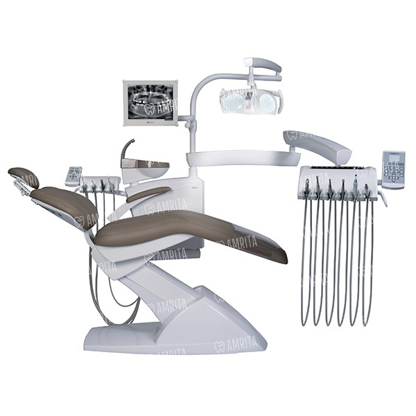 Базовая комплектация: блок врача NEO2 расположен на пантографическом плече, с нижним ведением шлангов, с отдельным блоком управления, цифровая индикация мощности микромотора/скалера, управление креслом со столика врача, LED негатоскоп, таймер ополаскивания плевательницы, наполнения стакана, выключения негатоскопа и инструментов, подготовка для подключения 5 инструментов.