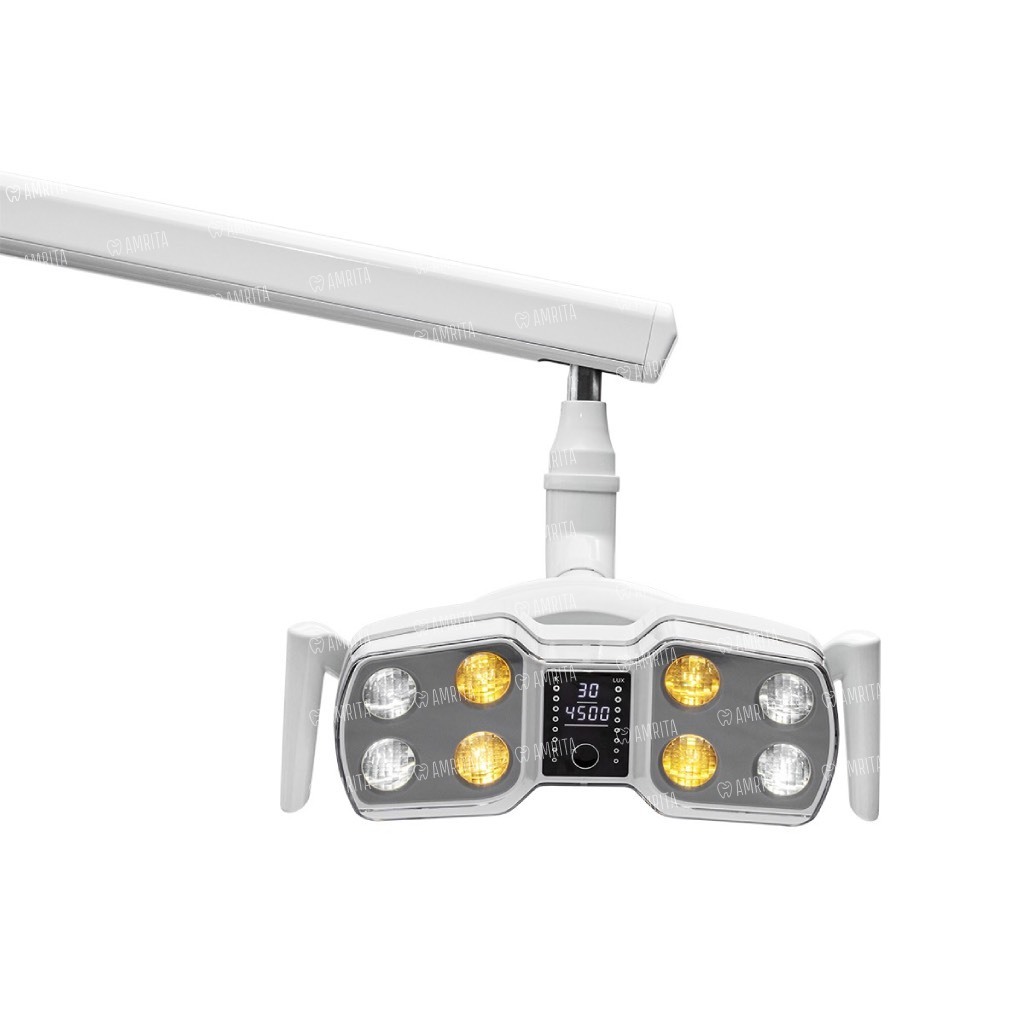 — С восемью диодами может включаться и выключаться бесконтактно, имеет плавную регулировку яркости от 10 000 до 60 000 люкс, с двумя типами освещения — теплый и холодный