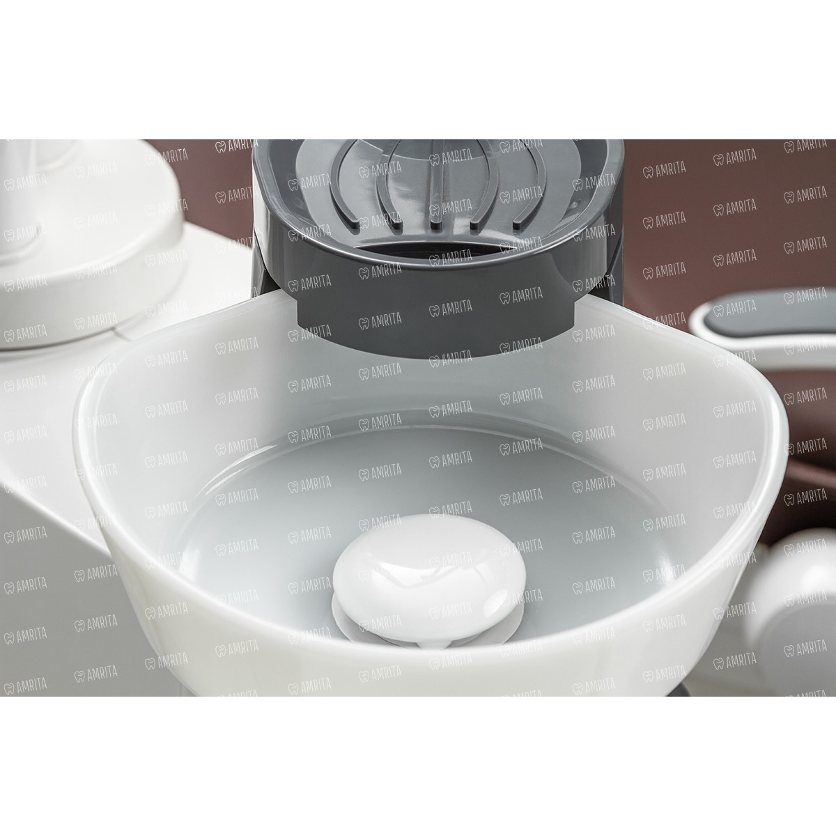 В качестве источника света выступает светодиодный светильник от итальянской компании FARO. Максимальная яркость устройства достигает 35 000 люкс, чего вполне достаточно для качественной работы. Управлять светильником довольно просто — для этого он оснащен эргономичной панелью управления. - Плевательница