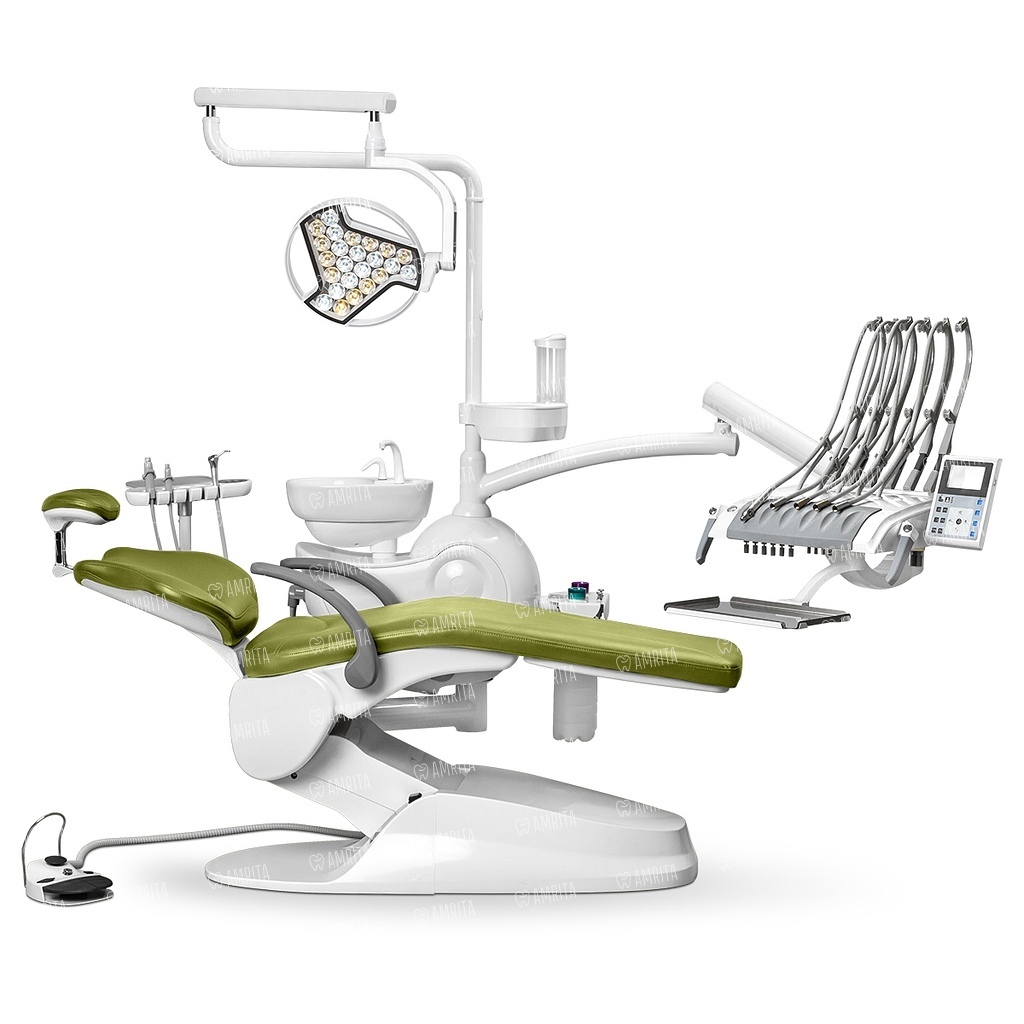 Стоматологическая установка SAFETY M2, верхняя подача, 24-диодный светильник, с педалью управления